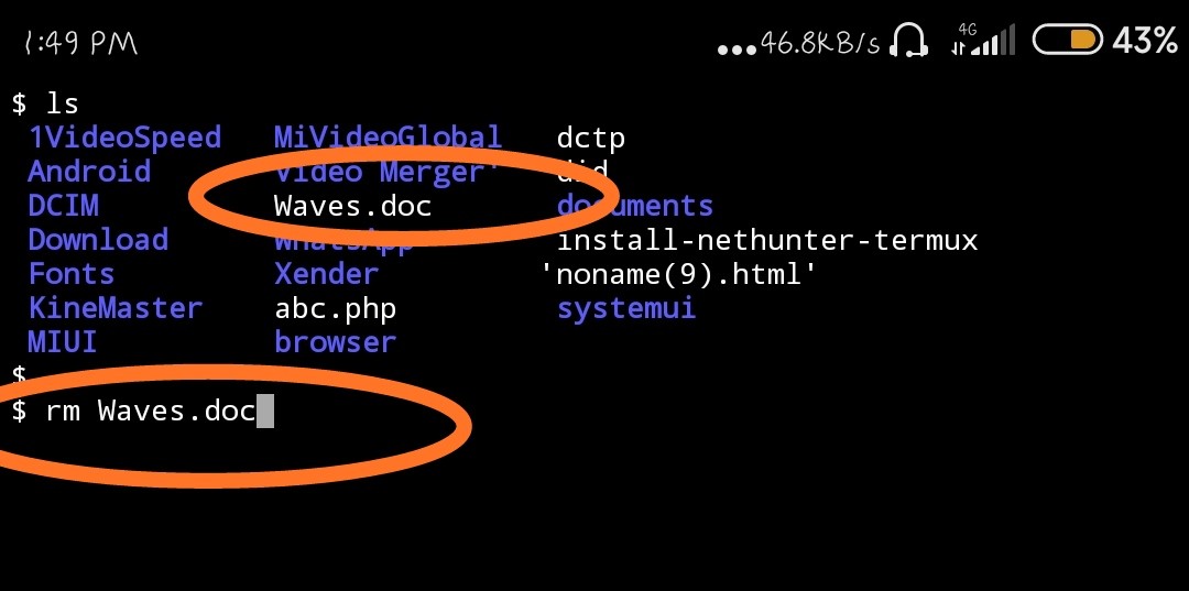 9) ‘rm’ :- This is simple tool to remove or delete any file from Termux. This command is only use for removing any file in termux .