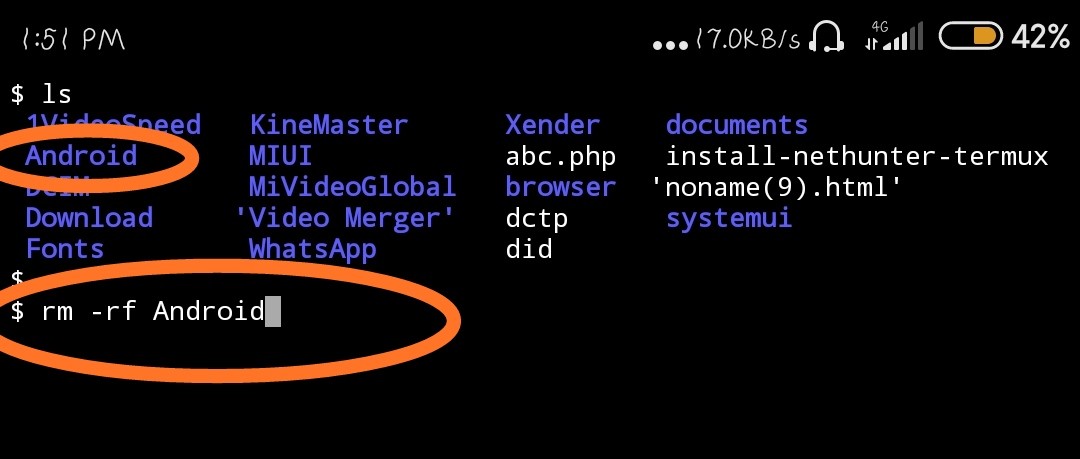 Ex:- rm -rf Android
