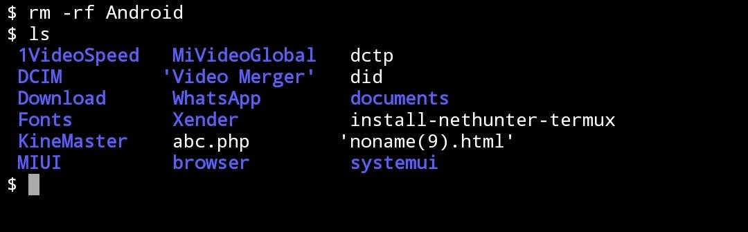 10) ‘rm -rf’ :- This command is use to delete or remove any Directory or folder or file from Termux. This command use to remove any Directory or folder & also anytype of file .