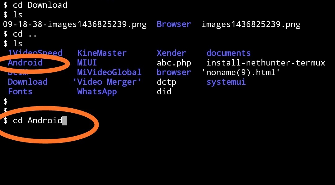 ‘ls’ command is directly use as by typing ‘ls’in termux. But termux is now empty, because no any tool is installed. Then if you can type ‘ls’ they termux not show any thing. But file are available in our file manager or in sdcard. Then access to files in sdcard next command is used.